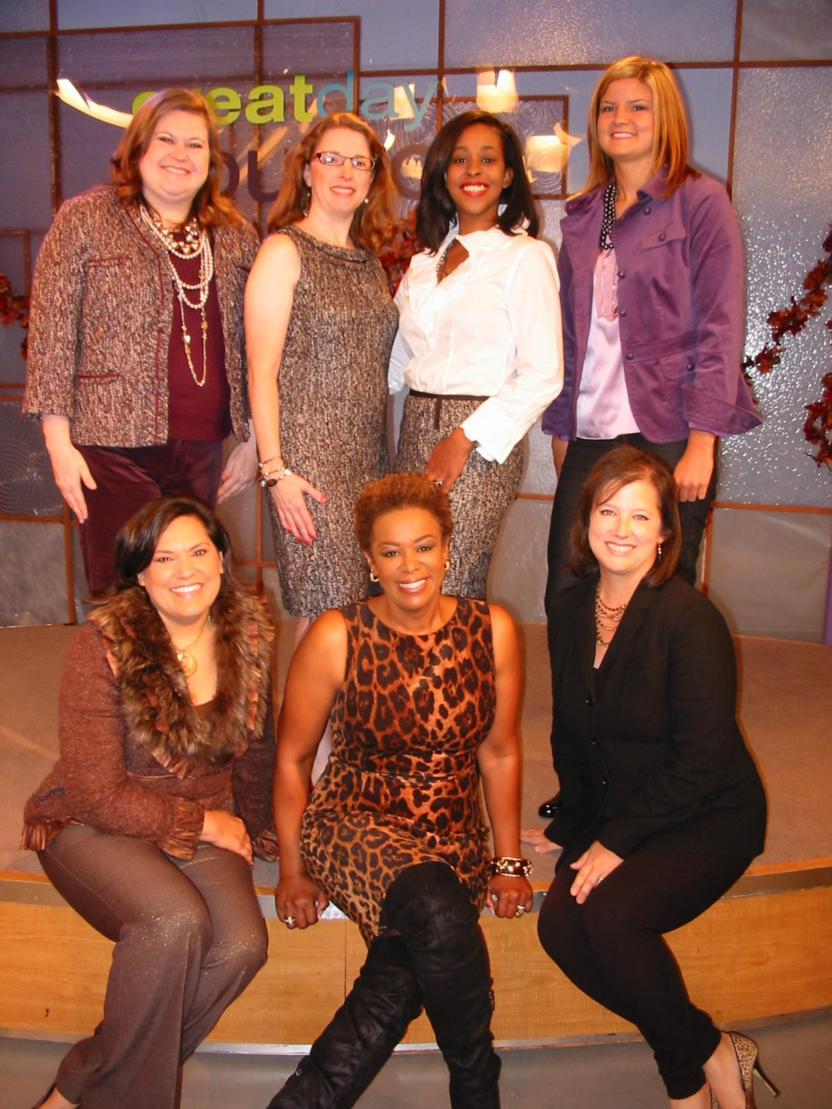 On set after the Show (from back left to right Stephanie, Amy, Anicea, Molly, Sarah, Great Day Houston Host Deborah Duncan, Talbots Regional Manager Courtney Troupe)
